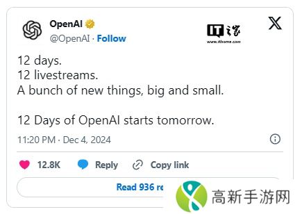 本站 12 月 5 日消息,当地时间 12 月 4 日,OpenAI CEO阿尔特曼在社交媒体透露,接下来每个工作日将进行一场直播,总共 12 场直播,其中包括发布或演示,其中包括一些大型活动和一些圣诞礼物。