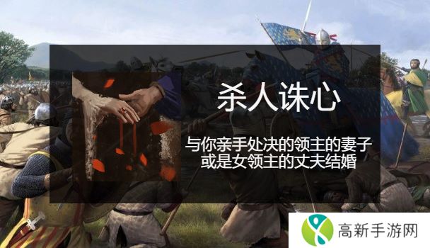 《骑马与砍杀2》中的杀人诛心是游戏里非常特别的一个成就,成就做起来不算难,要求是与你亲手处决的领主的妻子或是女领主的丈夫结婚,想要做的话首先需要把敌对贵族或者女士抓来在部队页面处决。 杀人诛心成就应该