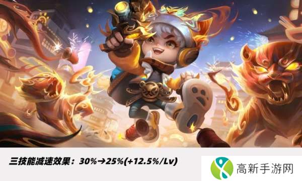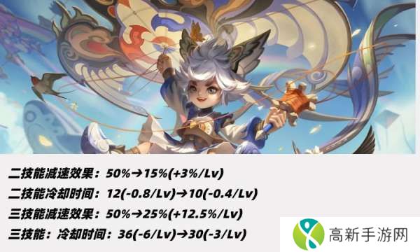 二技能减速从50%调整至15%-30%,二技能前期缩短2秒、满级不变。
