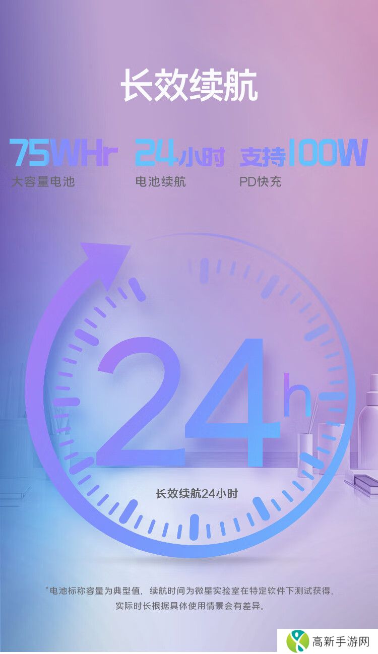尊爵 13 AI+ Evo 2024 笔记本电脑电池容量 75WHr,官方宣称续航 24 小时,支持 100W PD 快充。