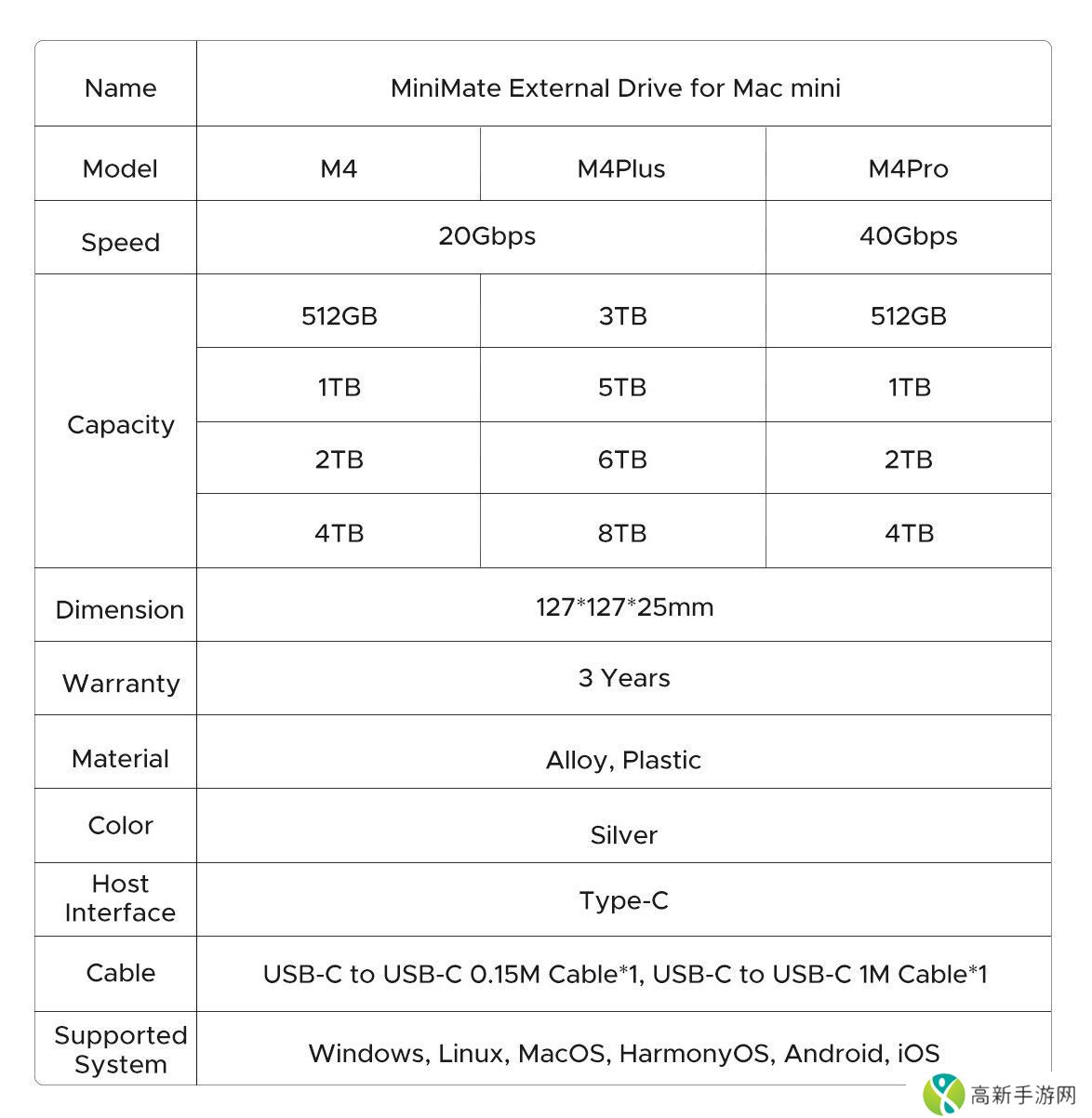 MiniMate 满足不同用户的存储需求,提供从 512GB 到 8TB 的多种容量选择,对于预算有限但又需要大容量存储的用户来说,MiniMate 是一款性价比极高的选择。
