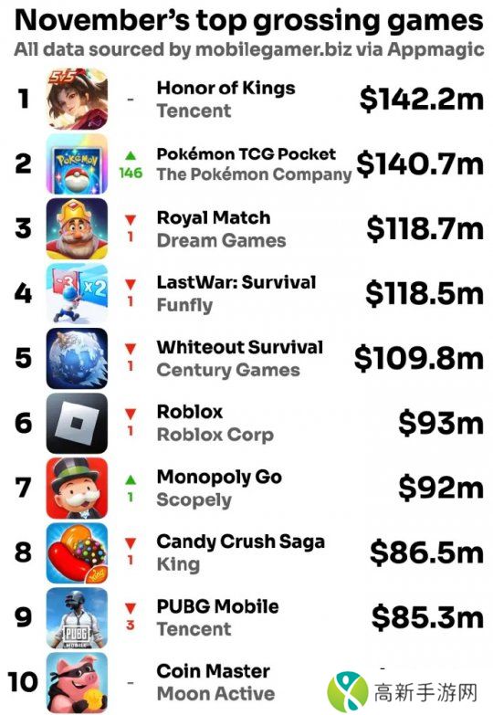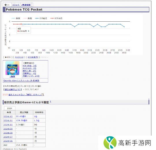 而在日本地区,《宝可梦TCG Pocket》11月单月收入就达到了129.58亿日元,超过了《原神》在2024年的总收入。12月份,本作极其有望攀上榜首。