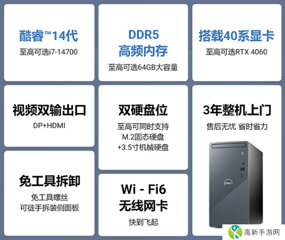 京东戴尔灵越 3030 游戏台式主机 “i7-14700F + 16GB RAM + 1TB 存储空间 + RTX4060”配置 9199 元直达链接
