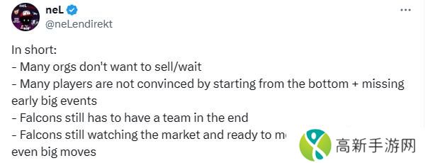 据记者neL报道:Falcons正在考虑新的阵容组建策略,并与ewjerkz和jambo进行接触。以下是详细报道。“Falcons在本次转会市场中是一个特殊的案例。去年,Falcons本应是迈向稳固成