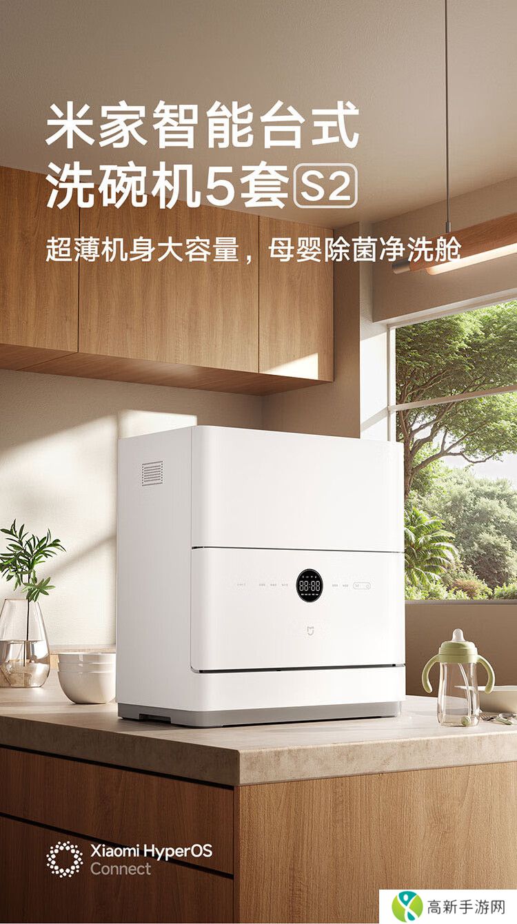 小米米家台式洗碗机 5 套 S2 发售于2024 年5 月,其主打母婴级认证、小型家用、智能识污等功能,首发价 1699 元。