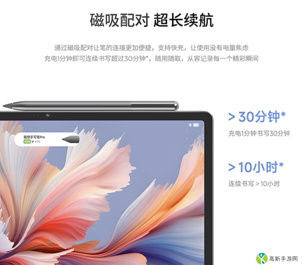 该手写笔支持磁吸在特定平板的侧面以进行充电,号称充电1分钟可书写30分钟,至高可连续使用10小时。