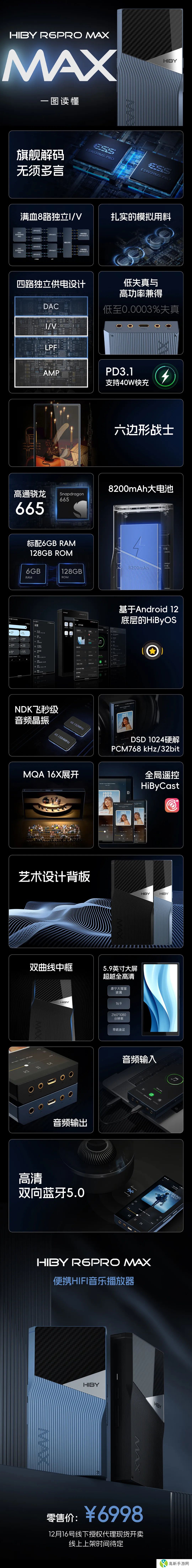 本站 12 月 11 日消息,海贝今晚发布了四款新品,其中 HIBY R6PRO MAX 便携 HIFI 音乐播放器售价为 6998 元,12 月 16 日开售。