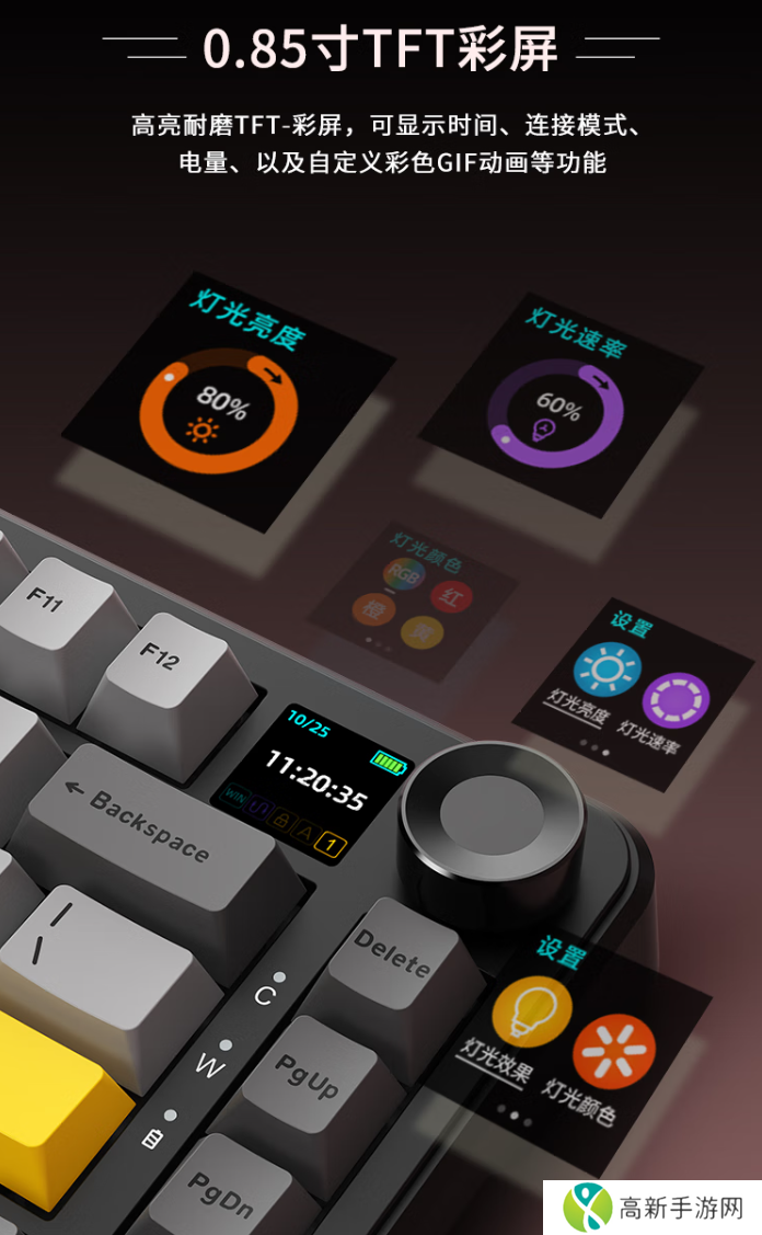 京东黑爵 AK820 MAX Plus 三模机械键盘 Gasket 结构 | 8000mAh 电池 179 元起直达链接据介绍,黑爵 AK820 MAX Plus 三模机械键盘提供带屏版 81 键款和常规版 82 键款,其中带屏版配备0.85 英寸 TFT 小屏,可显示时间、连接模式、电量、以及自定义彩色 GIF 动画等。
