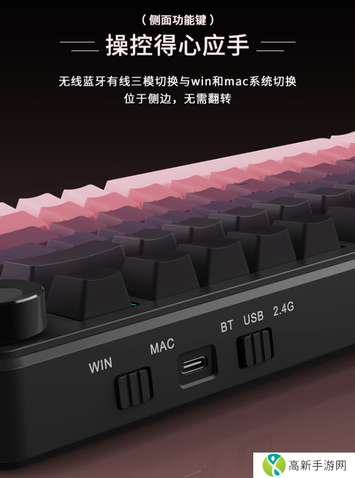 黑爵 AK820 MAX Plus 三模机械键盘采用 Gasket 结构,使用 PCB 单键开槽,支持全键轴座热插拔。键盘还配备侧面功能键,支持 2.4G / USB / 蓝牙三模切换。