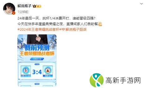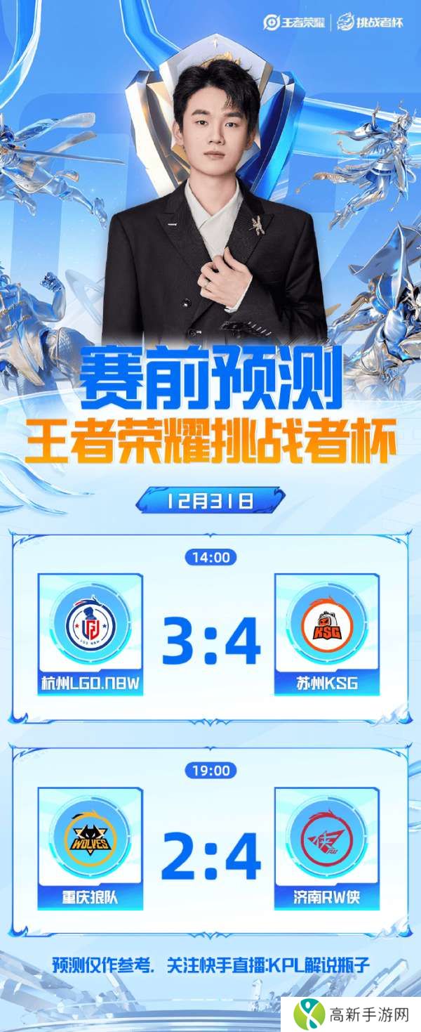 虎扑12月31日讯 瓶子预测今日赛果:KSG巅峰对决战胜LGD,RW侠淘汰狼队!原文如下:24年最后一天,挑杯1 4决赛开打,谁能晋级四强?今天在快手年度盛典荣耀之夜,直播间家人们自助餐