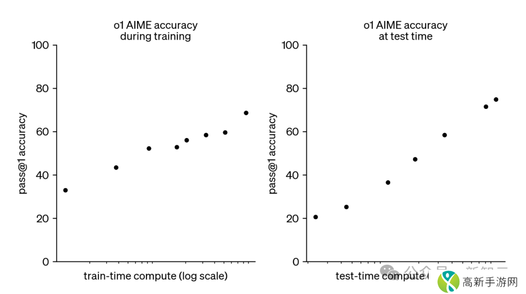 如下面所示,o1 的 AIME 准确率,随着测试时计算资源的对数增加而呈恒定增长。
