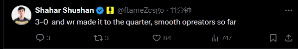 “2-0战胜了MIBR,今天我为我的兄弟们感到骄傲,我们在比赛中展现了出色的团队合作和技巧,淘汰赛再见,gg。”