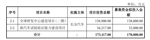 全球研发中心建设及核心能力提升项目投资总额 173,117.00 万元,具体内容包括全球研发中心建设项目(二期)和新汽车试验验证能力建设项目。