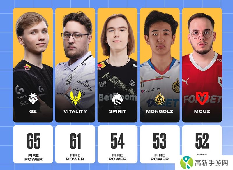 队伍平均火力值排名第三的是Spirit,第四和第五分别是The MongolZ和MOUZ。