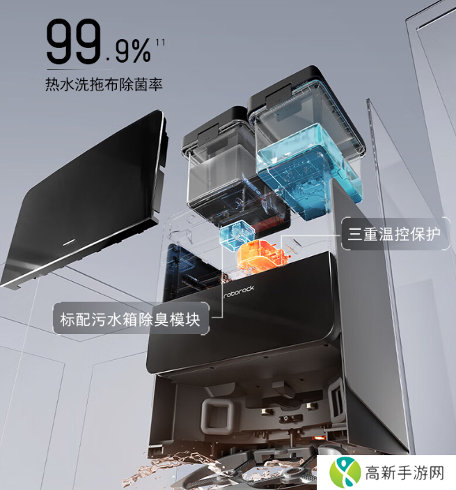 石头 G20S Ultra 配备顶配自清洁基站,支持 80 度热水除菌、基站 UVC 杀菌、自动抑菌除臭、自动集尘、补水、烘干等多项功能。