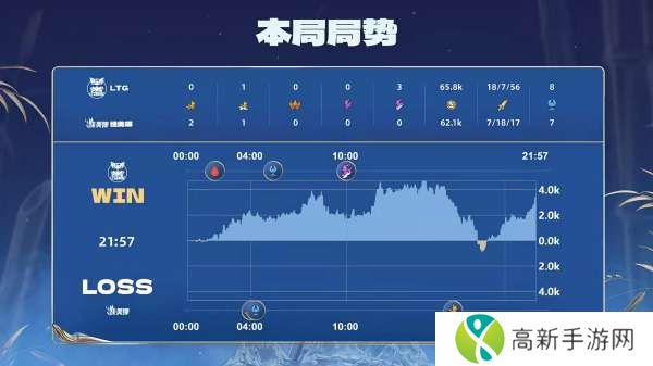 7分钟,鹿小鸣意欲操作被朵莉亚给夏侯惇刷出双大,LTG打出零换二