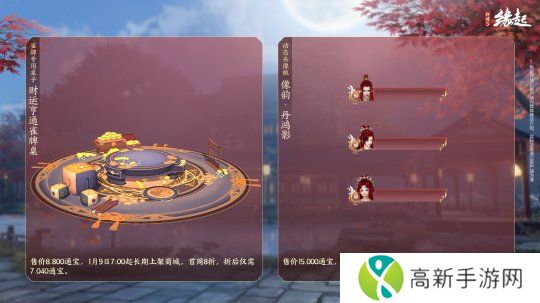 「像韵·丹鸿影」1月9日7:00-2月12日7:00限时上架,均为不绑定,售价15,000通宝。