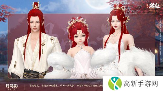 成男款儒雅从容,金冠束发,流苏轻垂身后,尽展君子之风与温润气度;成女款端庄典雅,赤色长发如流火垂落,点缀珠光华饰,尽显雍容与高贵;萝莉款灵动俏丽,金饰点缀花枝绾发,宛若春日雀跃,散发纯真可爱;