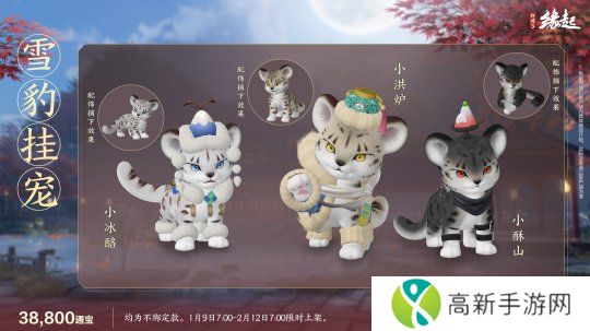 风雪之间,三只幼豹萌动现世,为江湖增添一抹趣味生机!全新“豹抱”系列挂宠各有特色:“小冰酪”活泼机灵,总爱四处撒欢;“小洪炉”慵懒随性,最爱窝着打盹;“小酥山”聪颖狡黠,藏着许多小心机。雪豹幼崽憨态可掬,娇小可爱,既有趣又治愈,陪伴你闯荡江湖,为你的江湖之旅增添无限欢乐与温暖。
