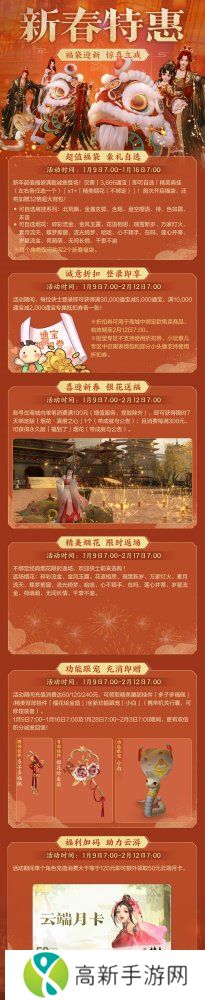 瑞雪满天辞旧岁,红梅绽放迎新春。乙巳将近,《剑网3缘起》又陪伴着侠士们走过了一整年。在这辞旧迎新之际,新春盛典如约而至!不仅福利丰厚,更有海量特惠活动诚意回馈!新春售卖新品也于今日同步上架商城!新衣装,新气象,《剑网3缘起》在此祝各位侠士新的一年红红火火,心想事成!