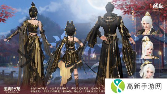 礼盒内含定制成衣、绑定款定制黑发、定制白发、定制背部挂件「缠枝影」,售价52,000通宝;
