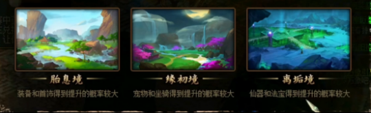 首先是初始地图的选择,比赛开始时,会出现三张地图供玩家选择。三张地图分别对应着宠物和坐骑出现几率增加、装备和首饰出现几率增加、技能和法宝出现几率增加的增益。