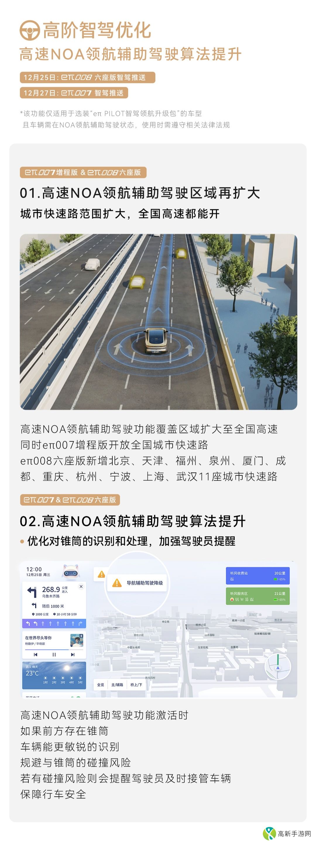 高速 NOA 领航辅助驾驶区域扩大(eπ007增程版、eπ008 六座版)