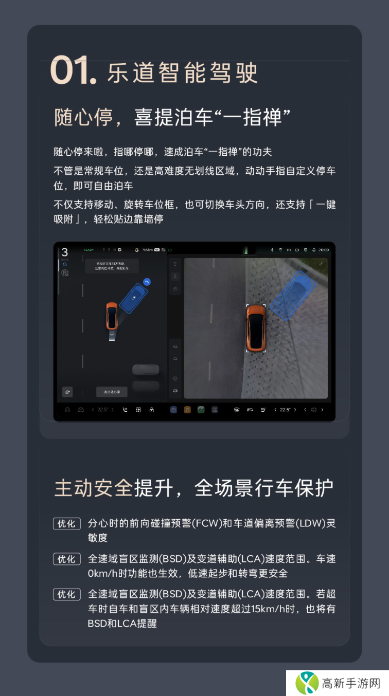 在智驾方面,本次 OTA 乐道 L60 新增“随心停”功能,覆盖常规车位及无划线区域,支持移动、旋转车位框、“一键吸附”贴边靠墙停车等场景。另外,本次 OTA 将优化分心时的 FCW 前向碰撞预警和 LDW 车道偏离预警灵敏度,BSD 全速域盲区监测及 LCA 变道辅助速度范围。