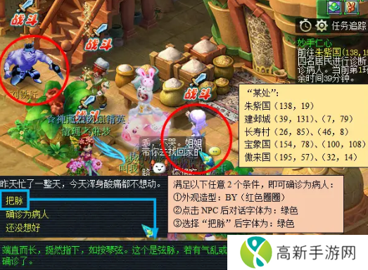⑤、居民看诊:按照任务要求前往指定坐标为四位居民进行诊断,触发战斗只有一个怪,血量较厚。