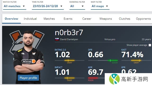 在艰难的主点人角色中,n0rb3r7在与VP阵容合作期间,平均rating为1.02,并在之前提到的IEM 里约Major以及ESL 挑战者 亚特兰大站中获得第一名。