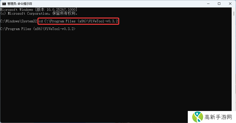 4. 使用 cd 命令跳转到 ViveTool 文件夹,例如“cd C:Program Files (x86)ViVeTool-v0.3.2”