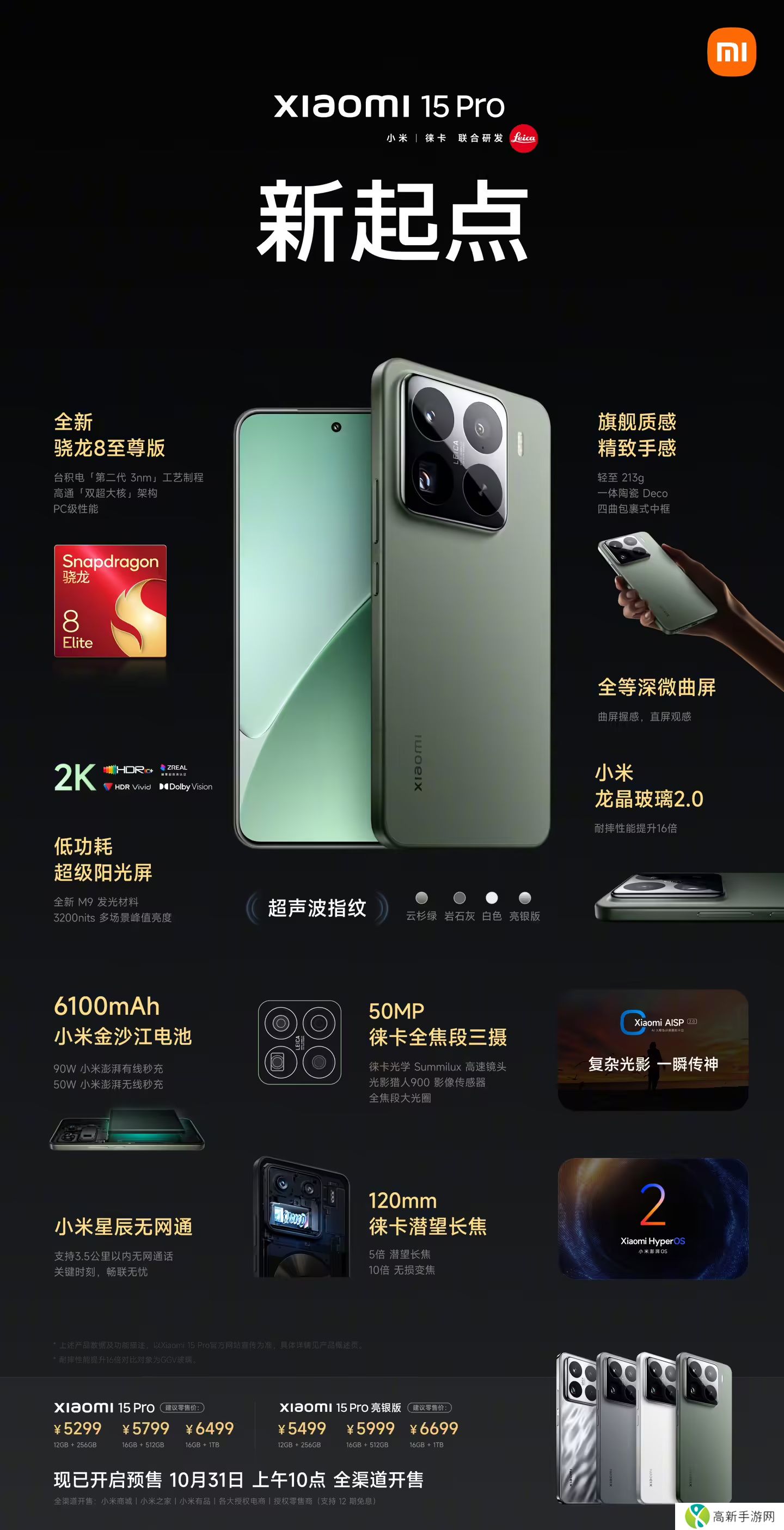 小米 15 Pro 提供了云杉绿、岩石灰以及白色三种版本可选,10 月 31 日早 10 点正式开售。本站附各配置价格如下: