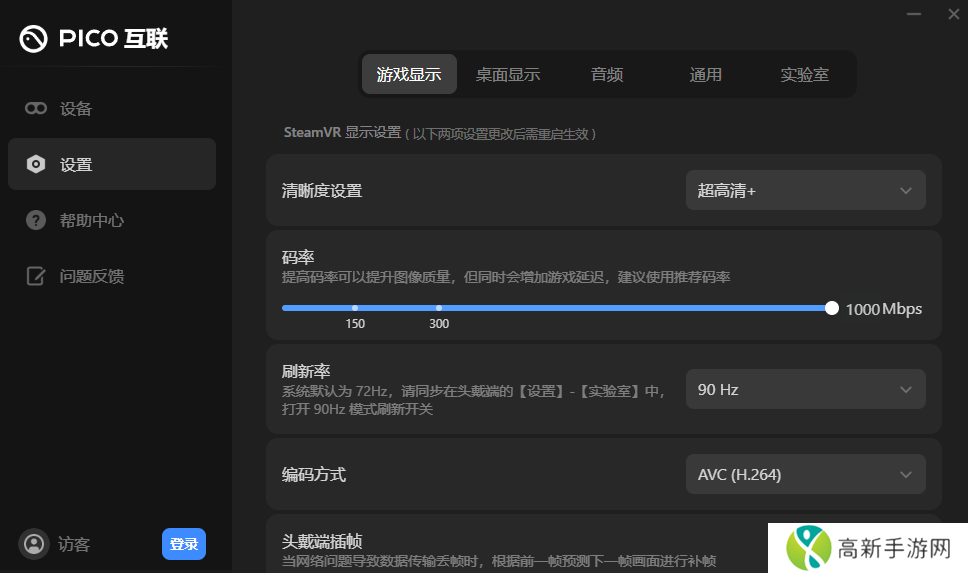 支持超高分辨率图像流化传输方案,配合优化的编解码方案,实现了超高画质及超大码率的图像流化传输,游戏画质体验接近传统 PC VR 体验