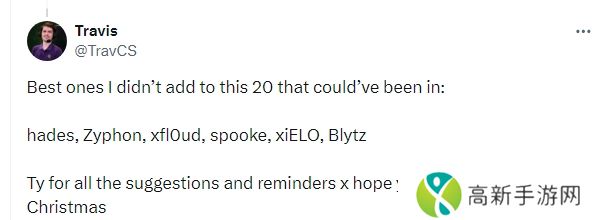除此之外,他根据评论区的提醒和建议补充了六名选手:hades、Zyphon、xfl0ud、spooke、xiELO以及Blytz。