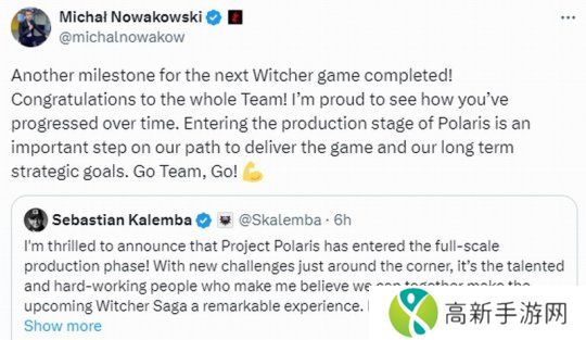 游戏总监Sebastian Kalemba也在推特上发文称:"我很高兴地宣布,《巫师4》已进入全面制作阶段。新的挑战就在眼前,那些有才华很勤奋的人让我相信,我们可以一起让《巫师4》成为一款有非凡体验的游戏。现在还不能停下脚步,敬请期待!”