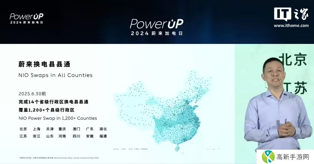 今年 8 月,蔚来创始人、董事长、CEO 李斌宣布,目标 2025 年 6 月 30 日前,完成 14 个省级行政区换电县县通,覆盖 1200+ 个县级行政区。