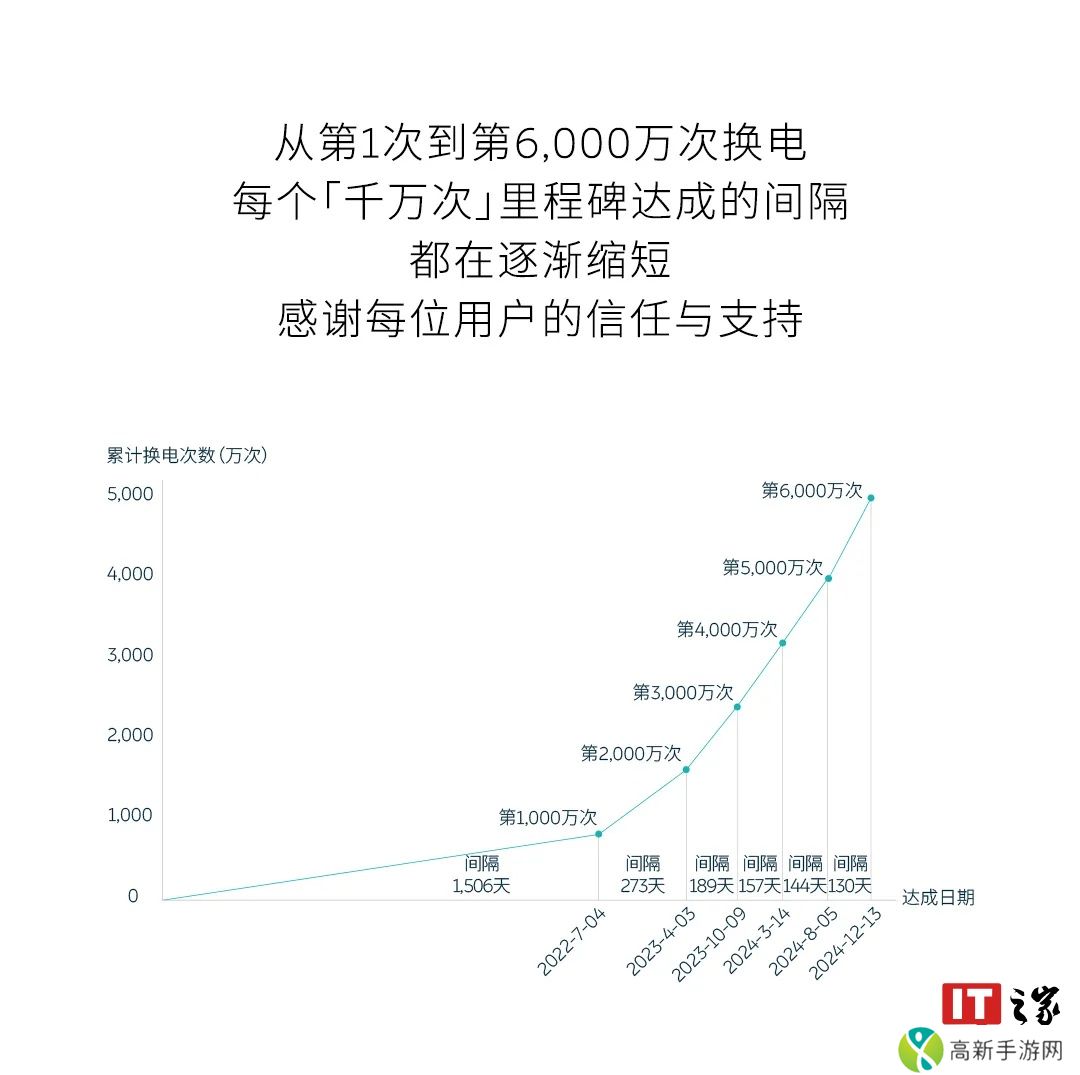 本站 12 月 13 日消息,蔚来汽车官方今晚宣布,蔚来换电突破 6000 万次。12 月以来,日均换电约 8 万次。