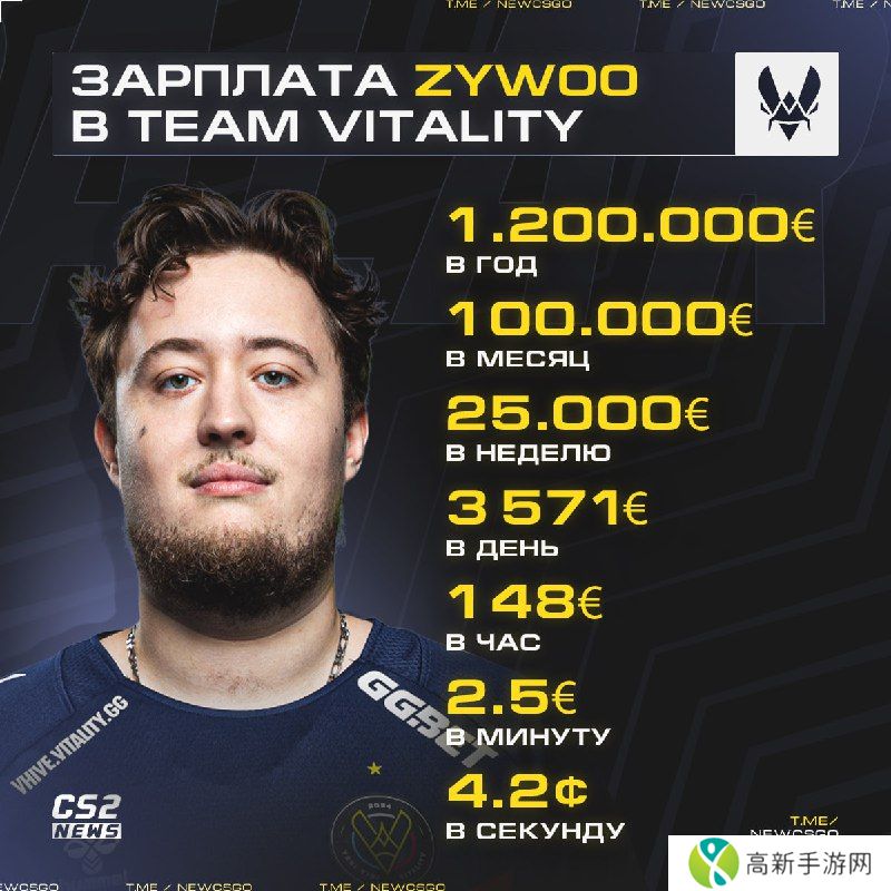 此外,俄罗斯媒体还放出了Vitality战队明星选手Mathieu Herbaut | ZywOo的薪资情况(计算单位为欧元):