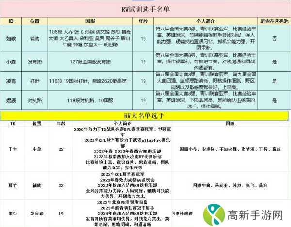 当前位置:首页>手游攻略> 目前可试训名单汇总:不然、冰尘、壶神多选手在列