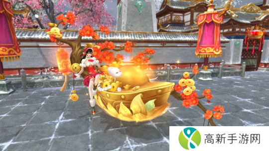 这次的新坐骑也是新年元素拉满,底座巧妙地采用了巨大的金元宝造型,金光闪闪。朵朵盛开的梅花点缀其间,更显清雅,为这豪华坐骑平添了几分高雅与韵味。