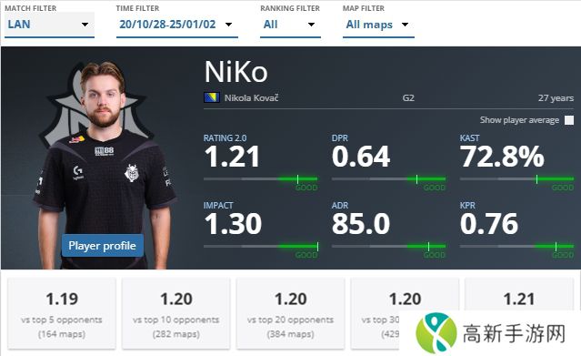 下面就让我们一起来回顾NiKo在效力G2期间的数据表现。以下数据统计自HLTV: