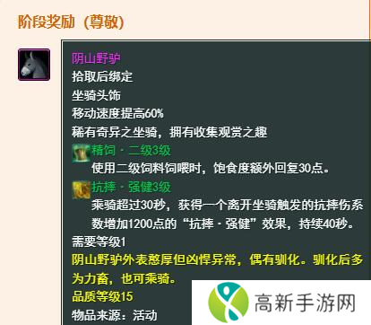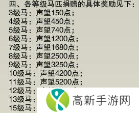 1、玩家可首先通过贡献任意马匹来提高声望至【友好】级别,随后必须捐献相应等级的马匹以进一步增加声望。