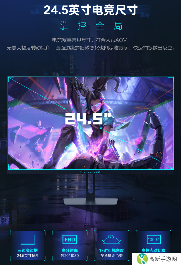 据介绍,雷神黑武士 24.5 英寸显示器“CF25F300”采用三边窄边框设计,屏幕比例 16:9、分辨率 1920*1080、支持 178° 可视角度、静态对比度 1000:1。
