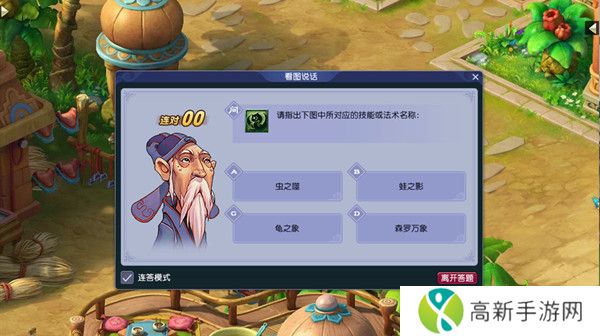 答题时,玩家可通过勾选答题界面上的“连答模式”选项选择答题模式:若勾选则为连续答题模式,每答完一题后会自动出下一题并扣除20体力,直至知识老人离开或角色体力不足;若不勾选则为单次答题模式,每答完一题后答题界面将会消失,出题时扣除20体力。