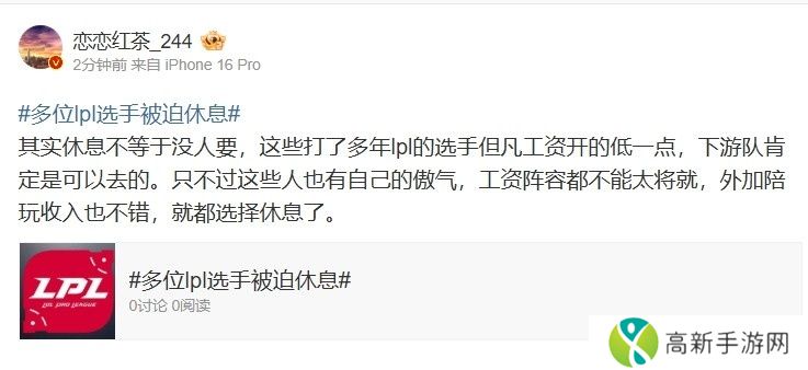 LPL爆料人谈多位选手休息:这些人有傲气!工资阵容都不能太将就