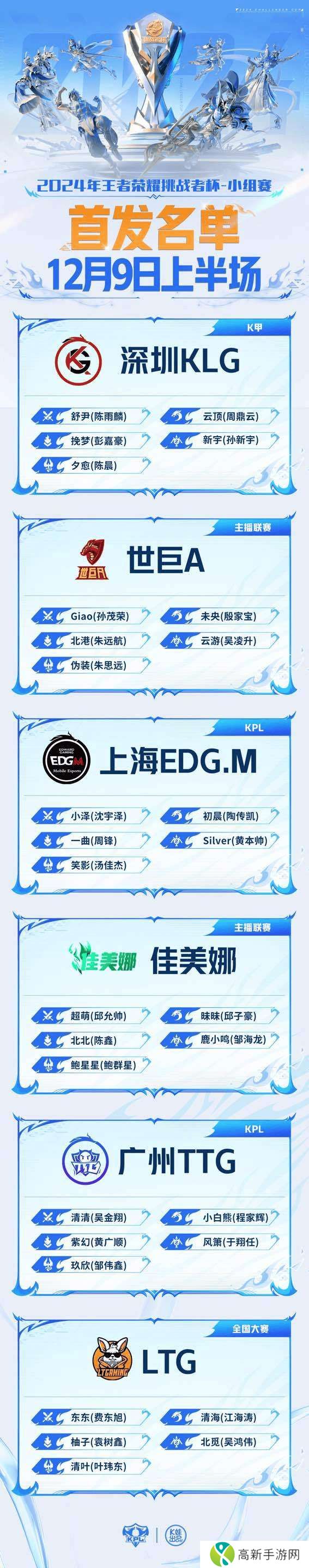 2024年王者荣耀挑战者杯 小组赛W1D3【首发名单】送达 !