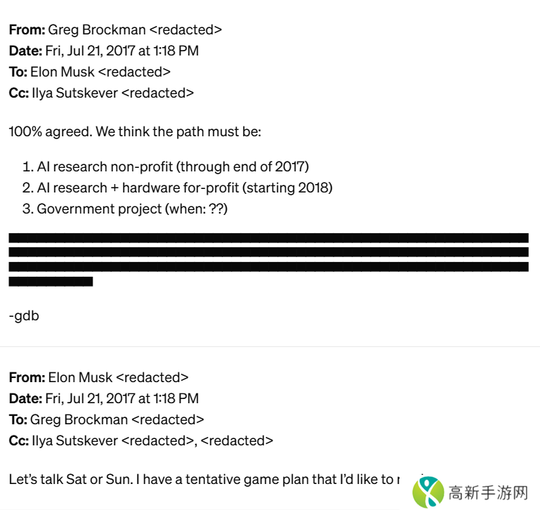 公开的新消息中提到,布罗克曼曾在 2017 年 7 月与兹利斯分享观点,马斯克表示,最初选择非营利结构是正确的,但现在也许并非如此。布罗克曼还在同月写信给马斯克,认为 OpenAI 的发展路径应当如下: