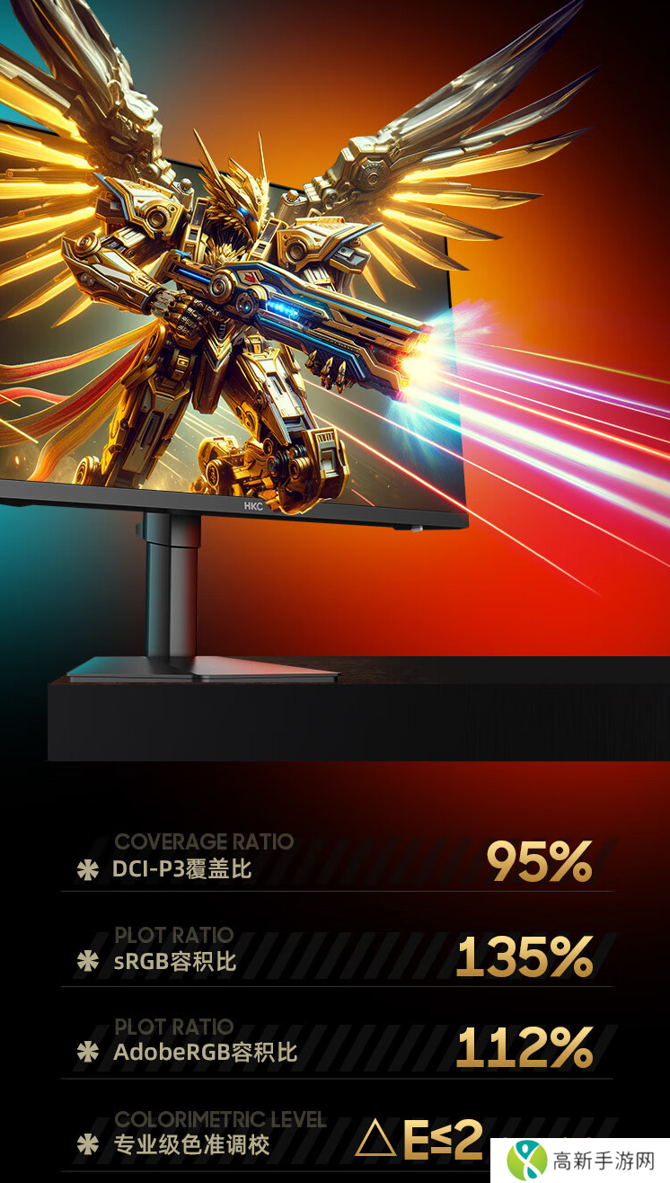 该款显示器提供 HDR 400 高动态解析功能,支持 95% DCI-P3 色域覆盖、135% sRGB / 112% Adobe RGB 容积比。显示器色准 ΔE≤2(平均值),同时支持色域缩限功能。