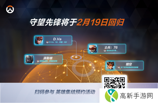 为迎接《守望先锋》2月19日国服回归,游戏官网现已开启英雄集结预约活动,