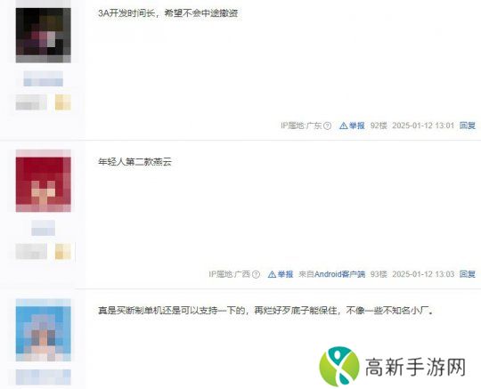 评论区有人表示:“3A开发时间长,希望不会中途撤资”“年轻人第二款燕云”“真是买断制单机的话,还是可以支持下”“符合预期,黑神话成功后大厂是必定快速推出3a的!”